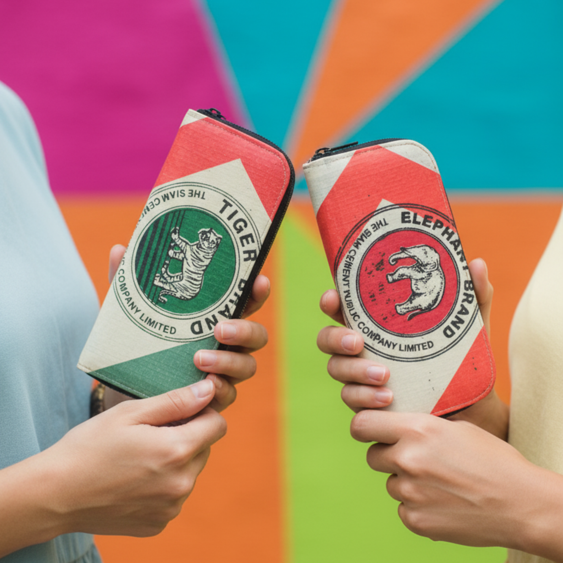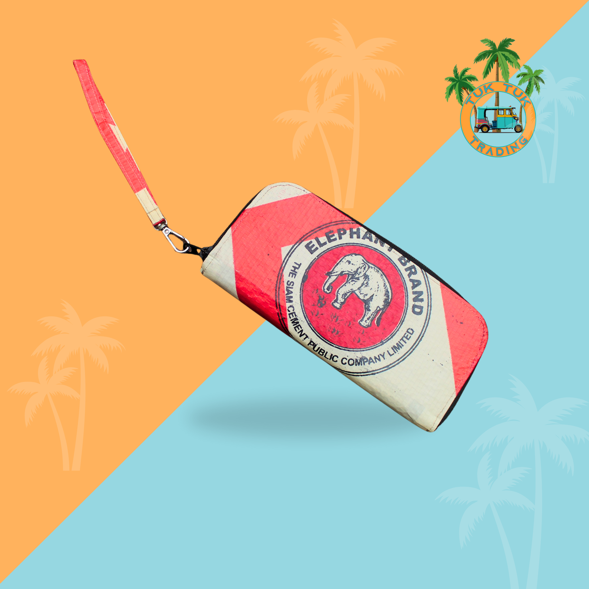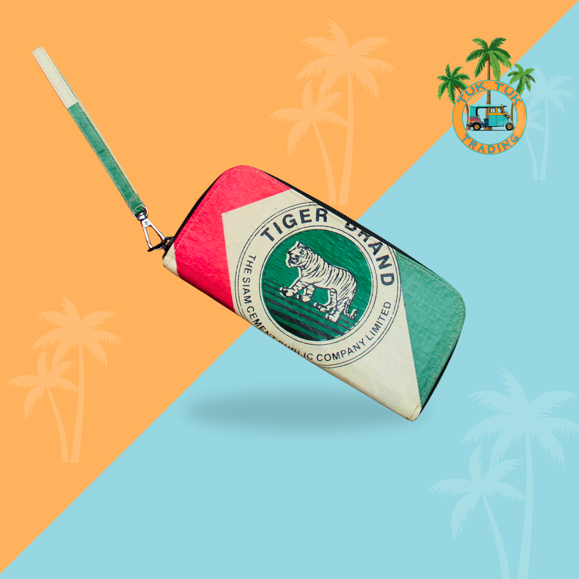 Crafted from recycled cement and rice bags, meet your favorite day-to-day wallet. Its accordion style design opens to a lined interior with credit card slots, coin holder, and three pockets. With a detachable wrist strap, you can fit all your essentials in one stylish place.